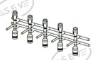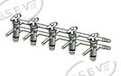 Esta línea para alto vacío se fabrica con 5 llaves de 3 vías, con una separación 100 mm. dentro de las 5 posiciones.