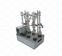 Este equipo de laboratorio se utiliza para hacer concentraciones en aceites esenciales, en la imagen se presenta un baño María con una adaptación para fijar 6 unidades de vidriería Kuderna Danish que se pueden suministrar de 125ml, 250ml, 500ml.