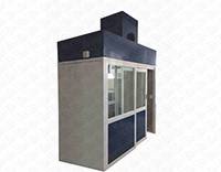 Esta cabina está diseñada para trabajar con equipos en su interior de gran altura que son colocados desde el piso, así como equipos que cuentan con rodamientos y pueden entrar y salir con facilidad sin que exista algo en el piso que estorbe.